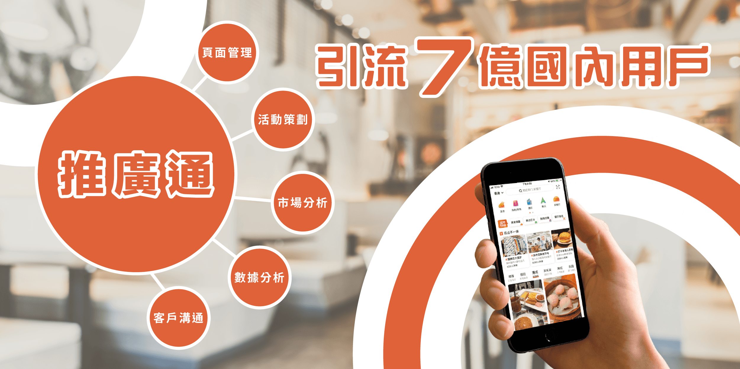推廣通根據消費者的搜索意圖、過往人均消費、瀏覽及消費歷史等屬性特征,向消費者推薦他最可能喜歡的餐廳。按照搜索關鍵字、地域、商圈等多場景精准投放。