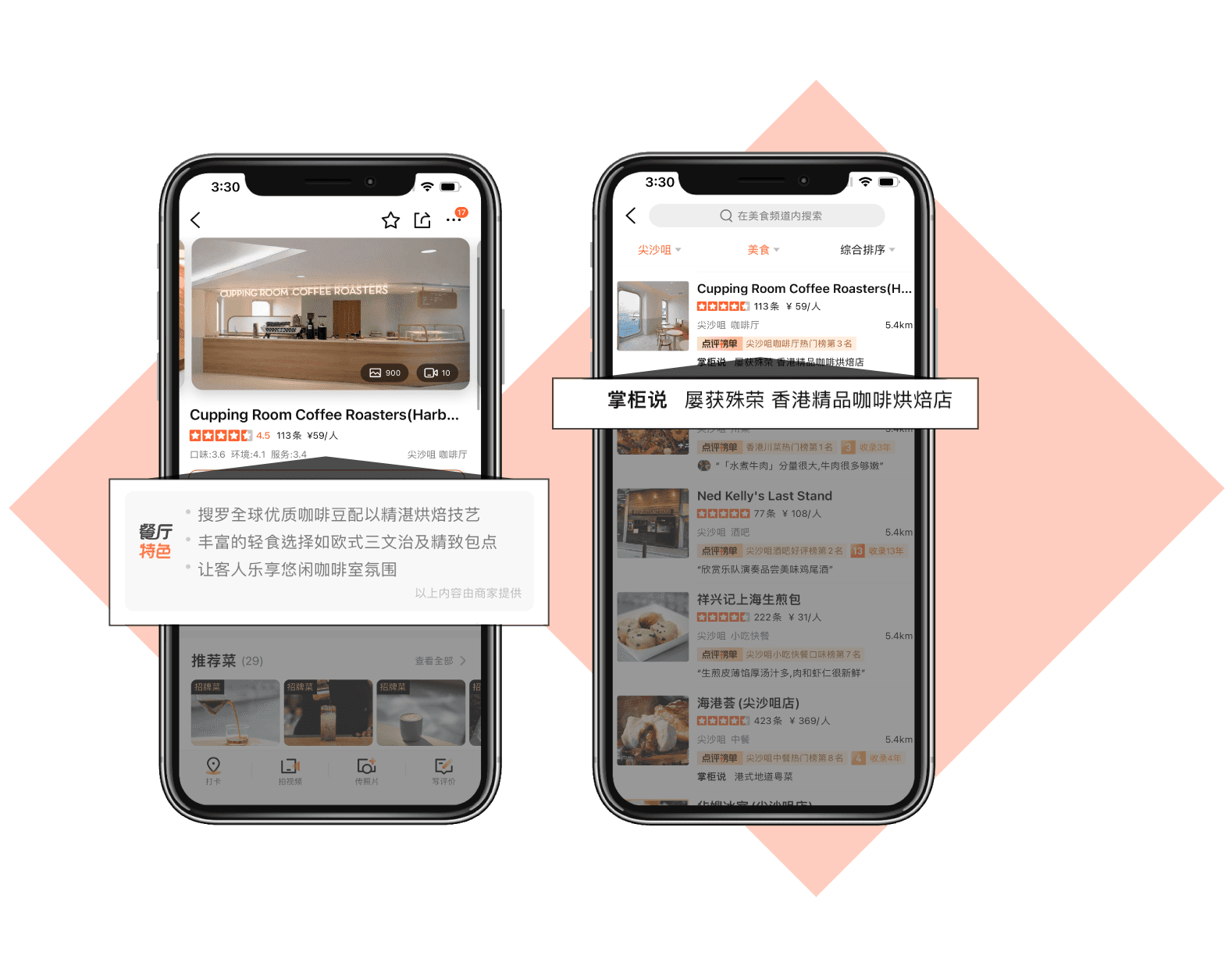 透過用戶搜尋相關美食習慣,在平臺推荐位置,吸引更多潛在客戶。